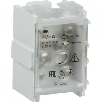 Блок распределительный проходной РБДп-35 125/50А на DIN-рейку (1х35-4х6мм2) IEK - YRB30-1-125