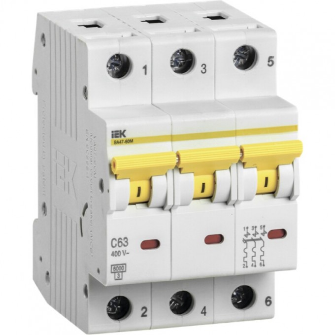 Автоматический выключатель IEK ВА47-60M 3Р 63А 6кА С - MVA31-3-063-C