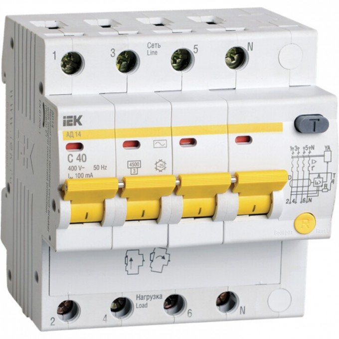 Дифференциальный автоматический выключатель IEK АД14 4Р 40А 100мА - MAD10-4-040-C-100