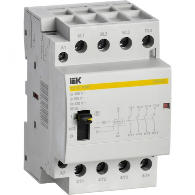 Контакторы модульные типа КМ торговой марки IEK предназначены для применения в сетях переменного тока напряжением до 400 В частоты 50 Гц и служат для коммутации слабоиндуктивных нагрузок с номинальным током до 63 А.Используются для автоматизации и управления различных технологических процессов, в том числе в системах освещения, кондиционирования, вентиляции и т.д.