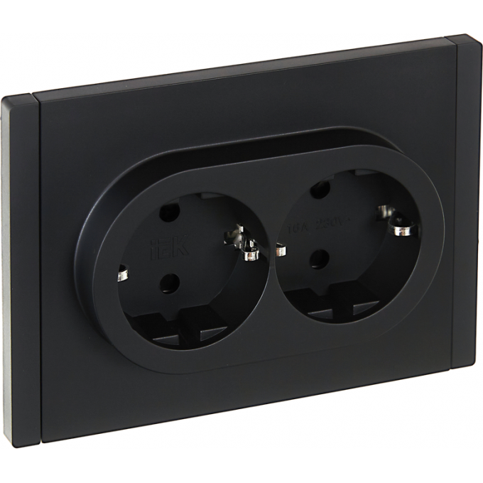 Розетка 2-местная IEK FORTEPIANO с заземлением, с защитными шторками, безвинтовое крепление, 16А FP123 черный FP-R24-16-1-K02