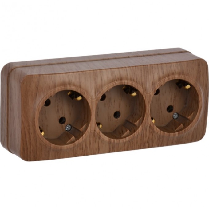 Розетка трехместная для открытой установки РС23-3-ХД с заземлением 16А IEK GLORY дуб - ERH31-K24-16
