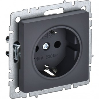 Розетка 1-местная с заземлением с защитными шторками 16А IEK BRITE РС14-1-0-БрС сталь - BR-R14-16-K46